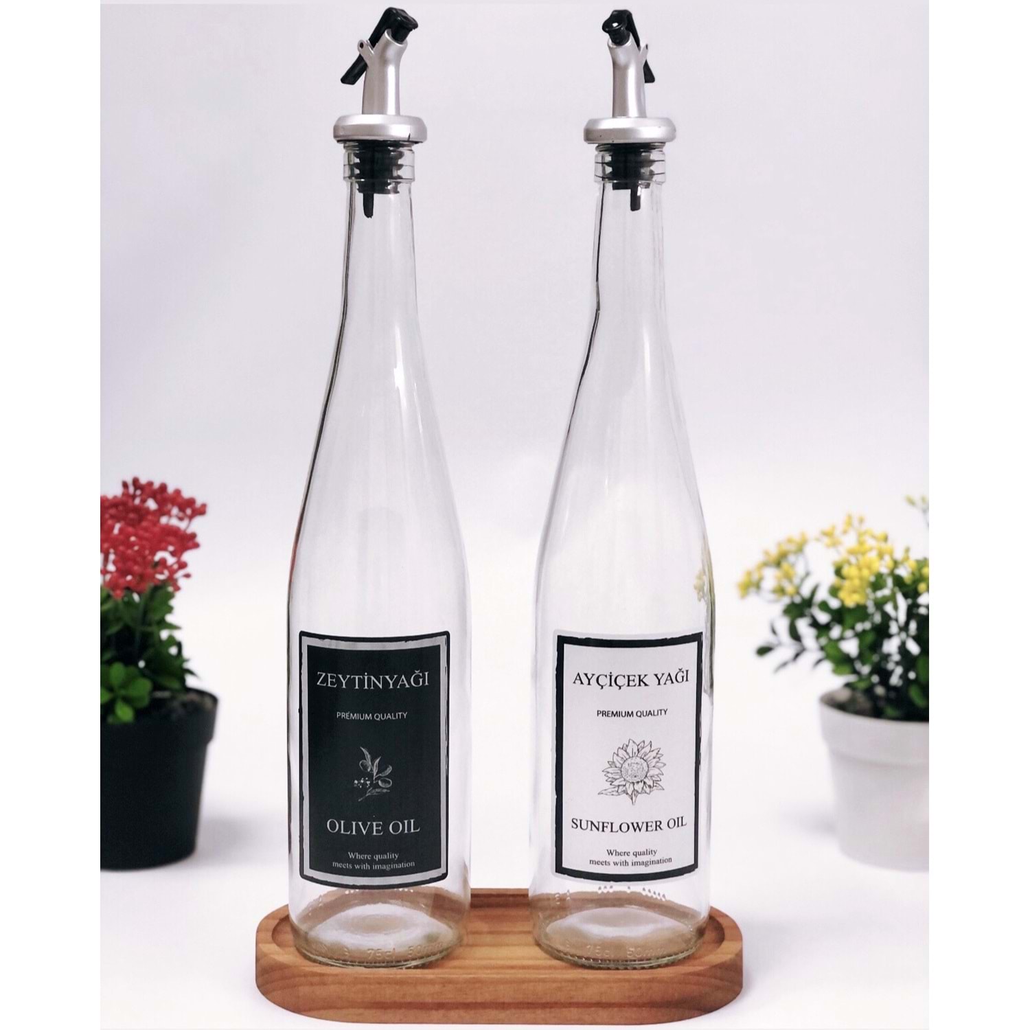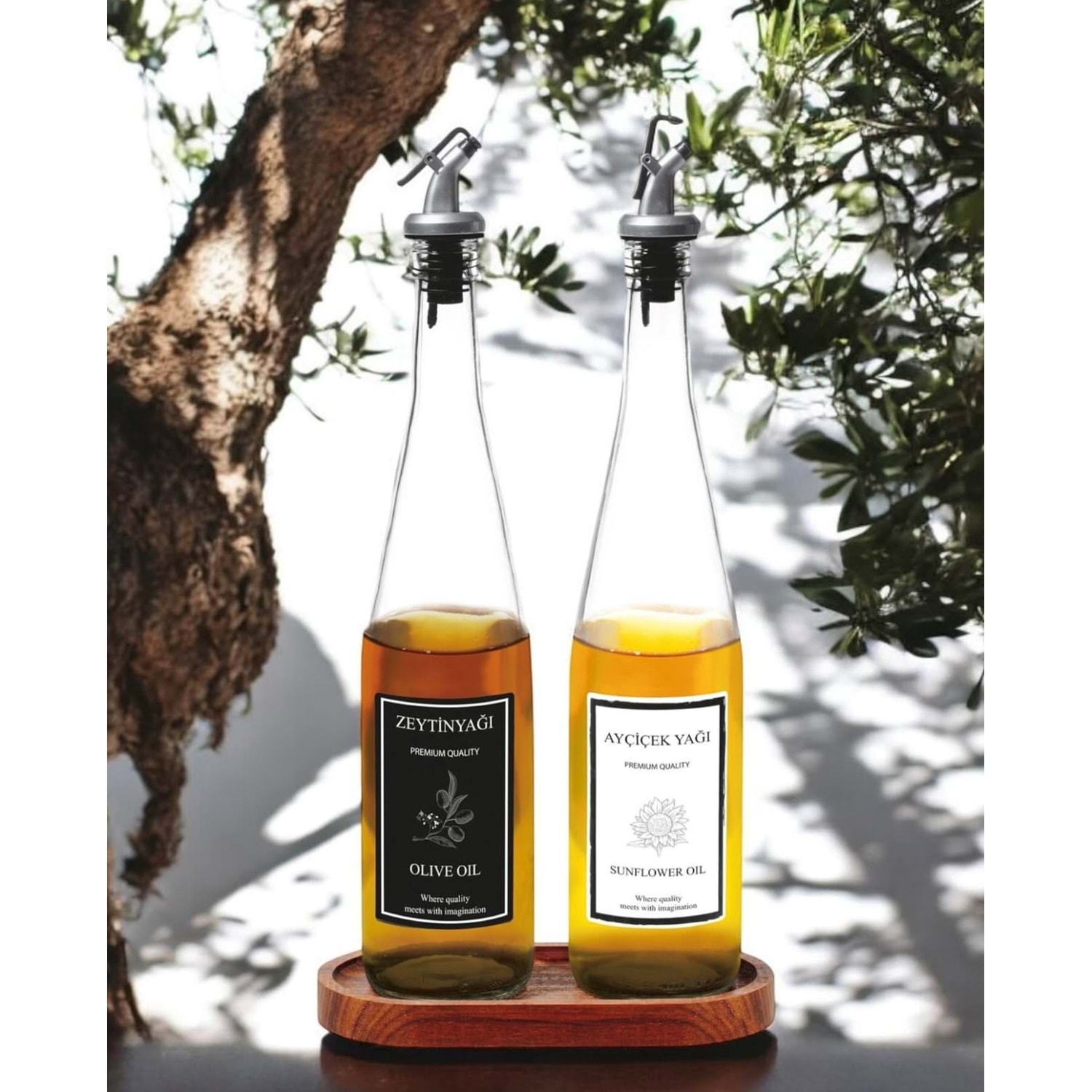 Vanes Oliva 750 Cc 2 Li Ahşap Standlı Damlatmaz Cam Yağlık (6 Paket)