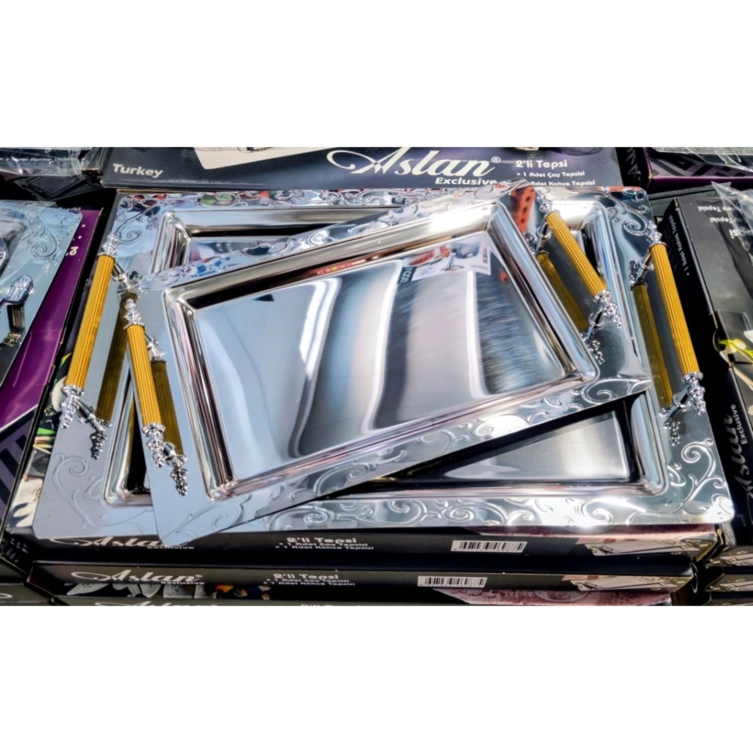 Aslan 2 Li Gold Çay Tepsi 10Lu